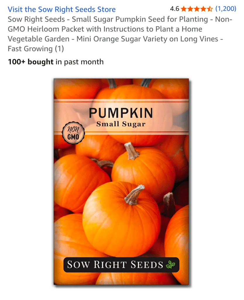 Sugar Pie Pumpkin Seeds – reliable germination and sweet flavor.