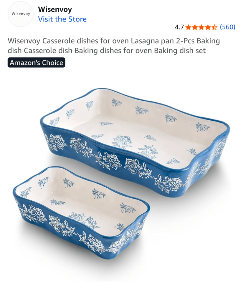 Hand painted baking dish with ruffled edges โ Equally suited to lasagna or apple crisp, and pretty enough to go straight from oven to table.