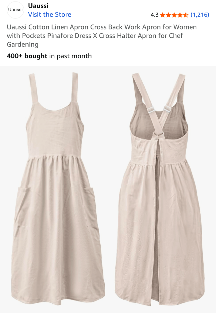 Linen cross-back apron โ Comfortable and elegant, the kind you donโt mind wearing all day.