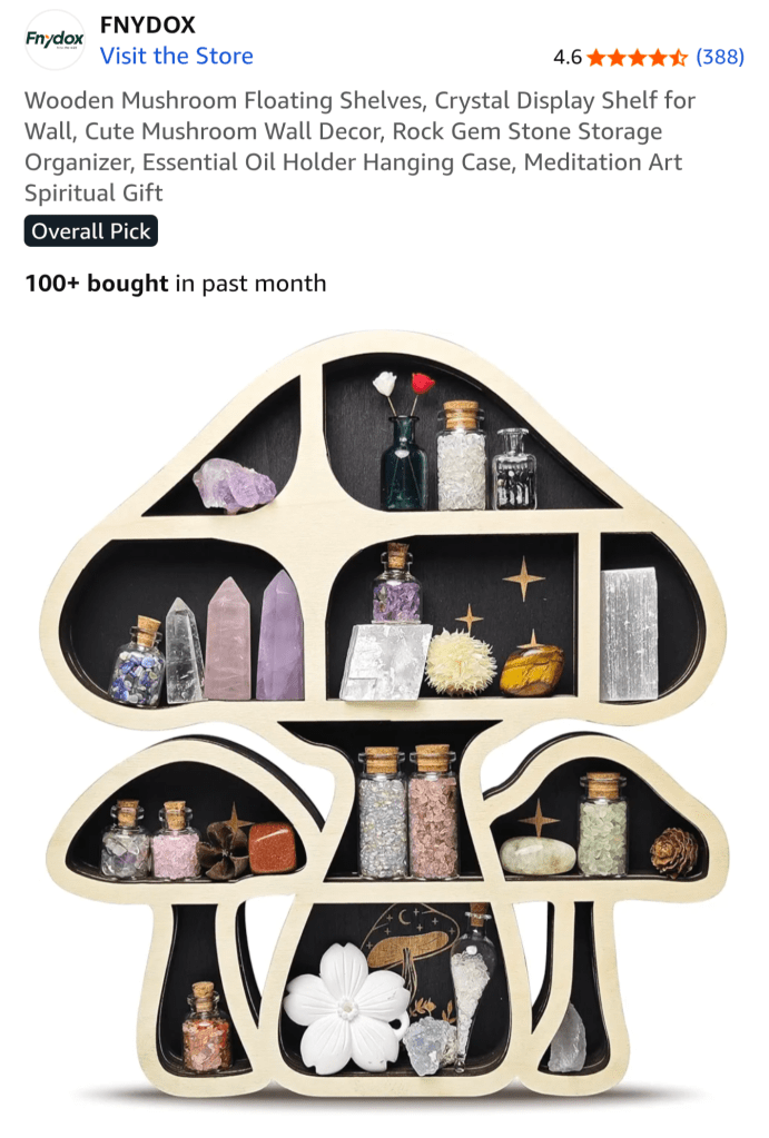 Wooden mushroom display shelf for nature finds โ Seashells, feathers, crystals, pinecones โ a museum of childhood wonder.