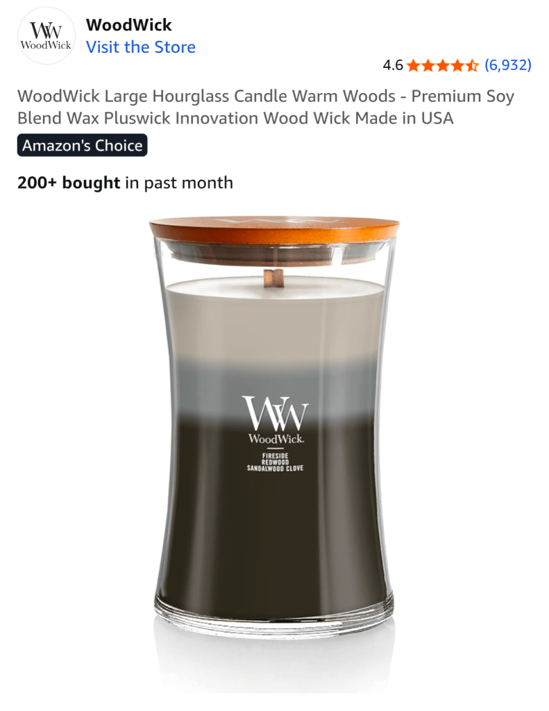 Crackling wood-wick hourglass candle โ Sound and scent together create instant calm.
