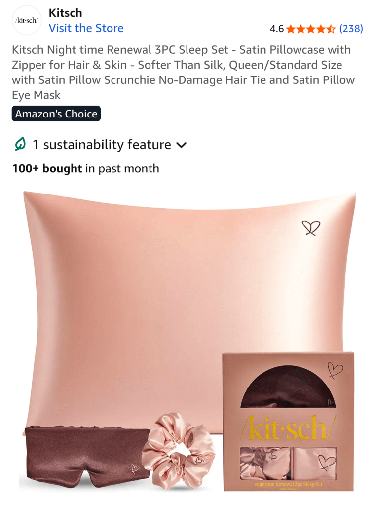 Satin pillowcase & eye mask set โ Cool against the skin, easy luxury youโll use every night.